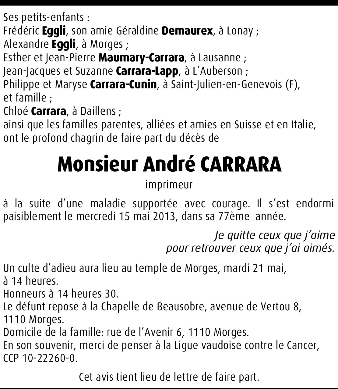 Vous souhaitez rester informé des nouveaux avis et condoléances pour ce défunt ?