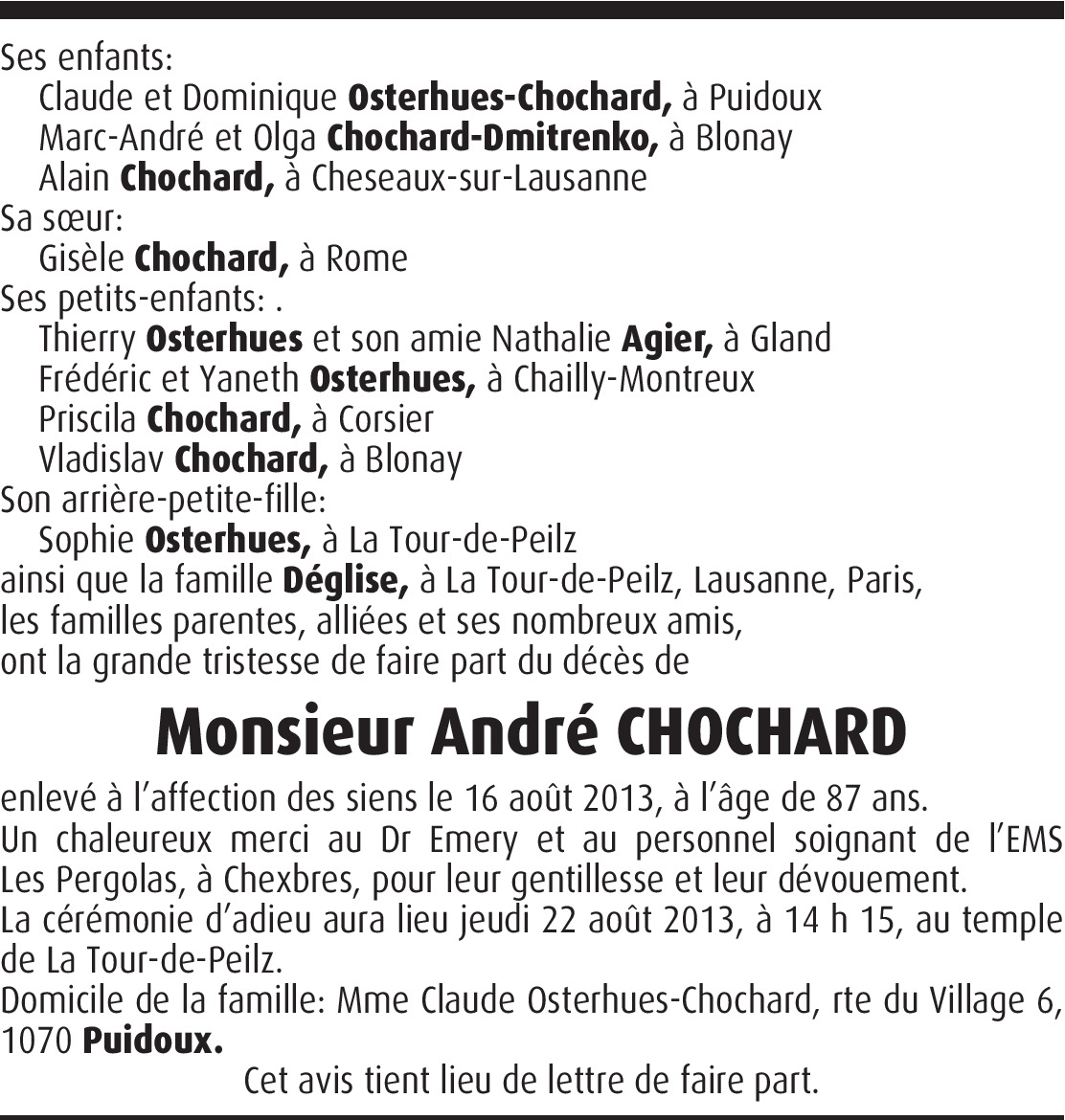 Vous souhaitez rester informé des nouveaux avis et condoléances pour ce défunt ?