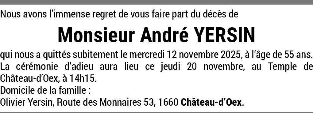 J’aimerais exprimer mes sincère condoléances à toute la famille d’André et à tous ceux qui l’aimaient.