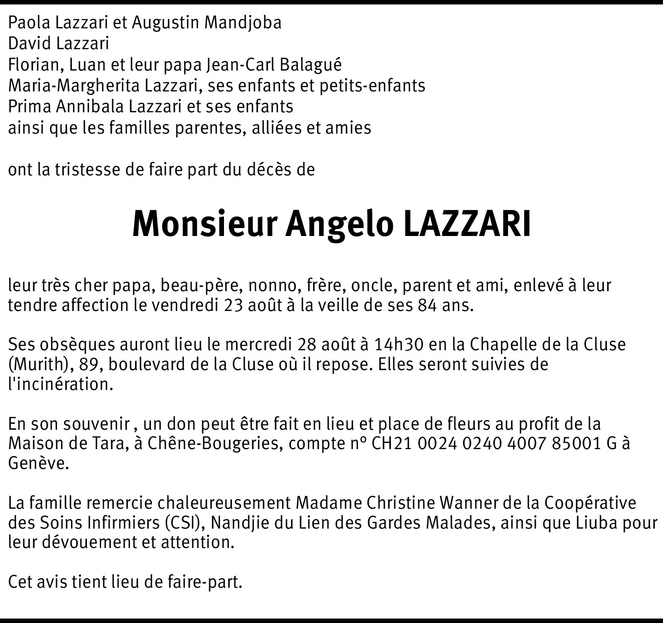 Vous souhaitez rester informé des nouveaux avis et condoléances pour ce défunt ?