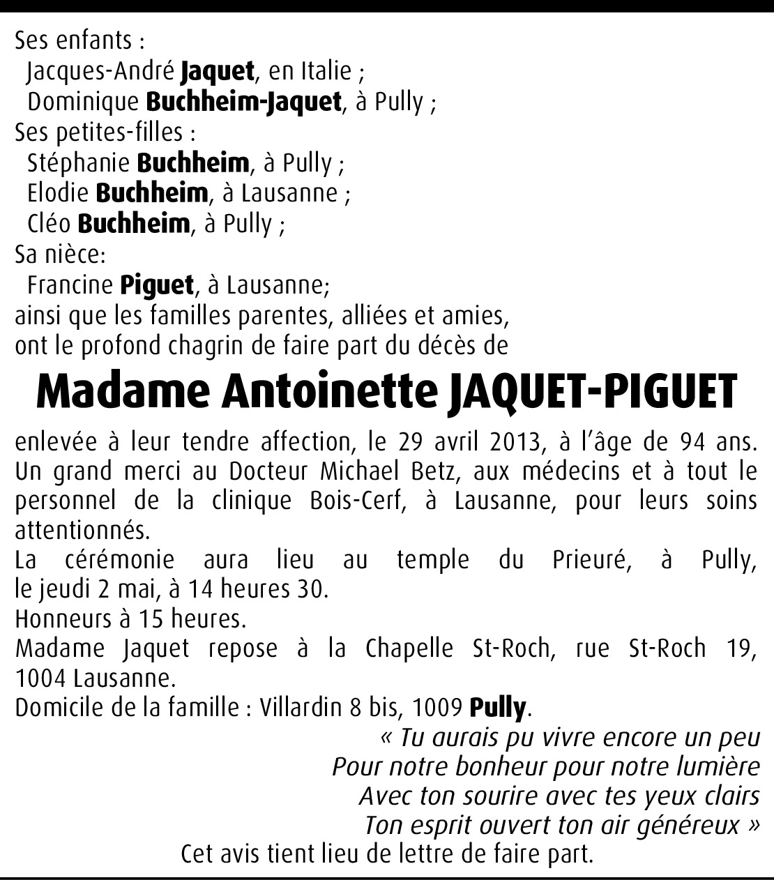 Particulièrement touchée par le départ d'Antoinette, meilleure amie de maman disparue depuis maintenant 10 ans, une page qui se tourne définitivement, mais que de bons souvenirs qui resteront gravés pour toujours! Avec toute mon affection à Dominique, Jacques, Stéphanie, Elodie et Cléo.