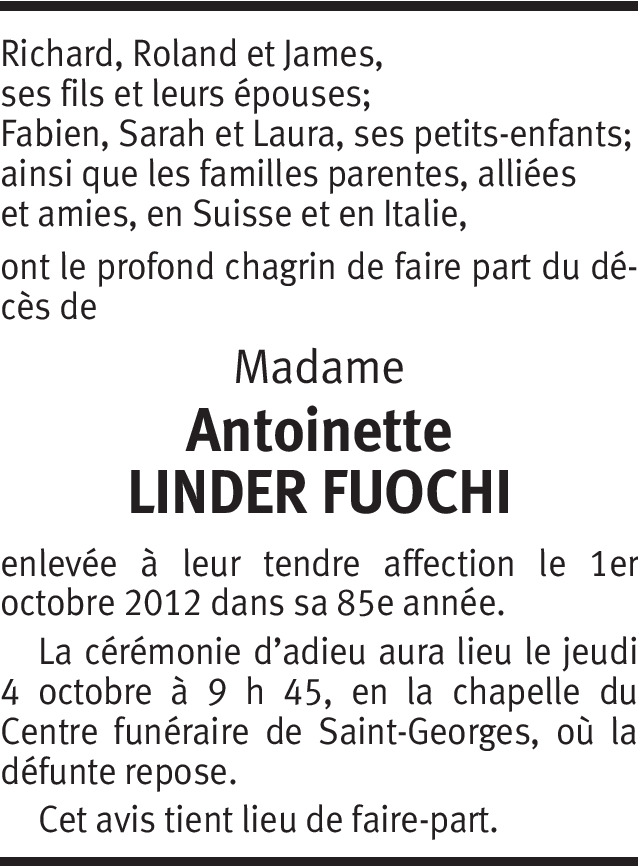 Il y a plus de 4 ans Signaler Nous avons appris avec tristesse le décès de Antoinette, nous vous souhaitons nos sincères condoléances, nous sommes en pensées avec vous. Gros bisous à Riri, Rolland et James. Tamara, Jean-Pierre et Christiane De la part de Oramancey Tamara