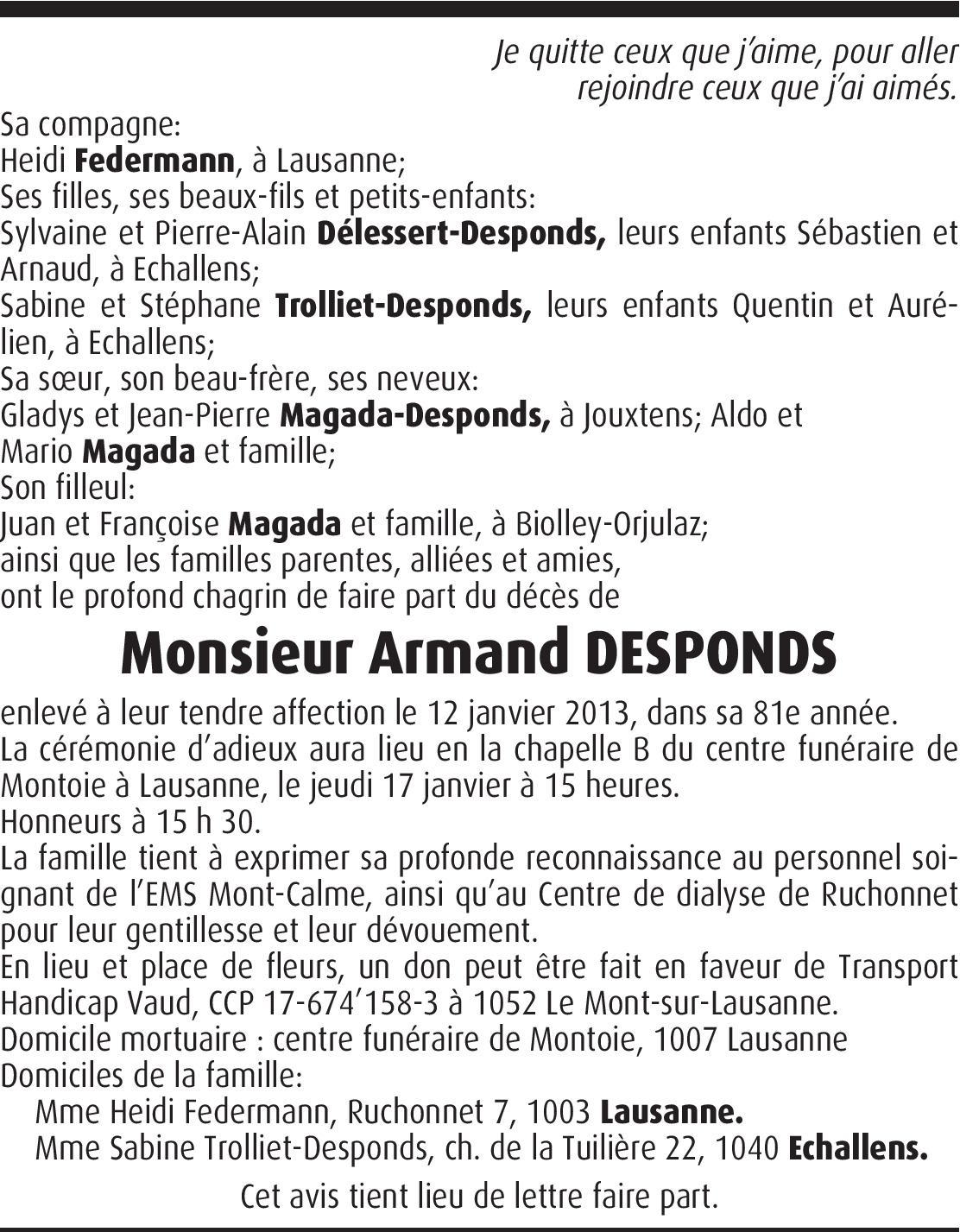 Dernière condoléances
