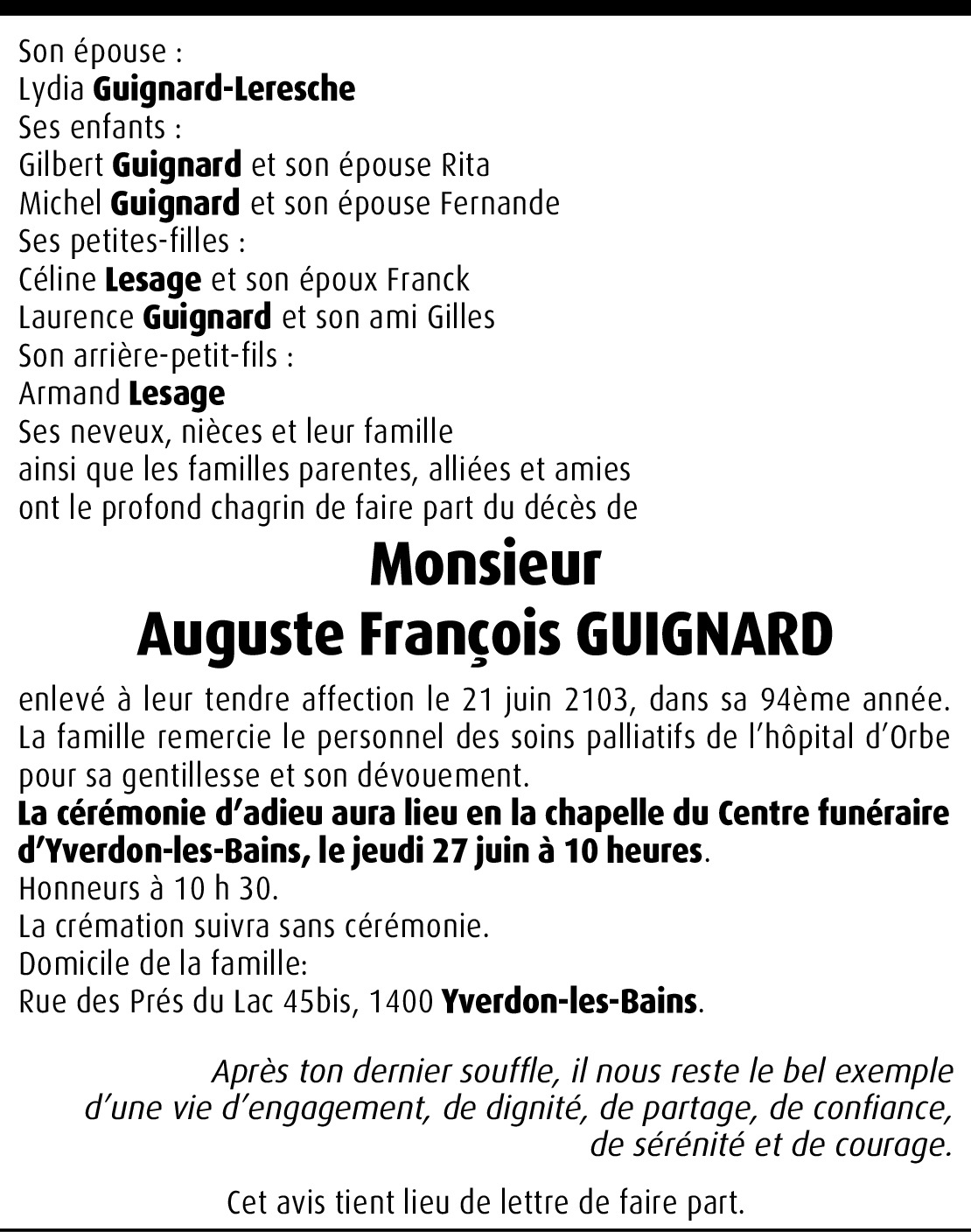 Vous souhaitez rester informé des nouveaux avis et condoléances pour ce défunt ?