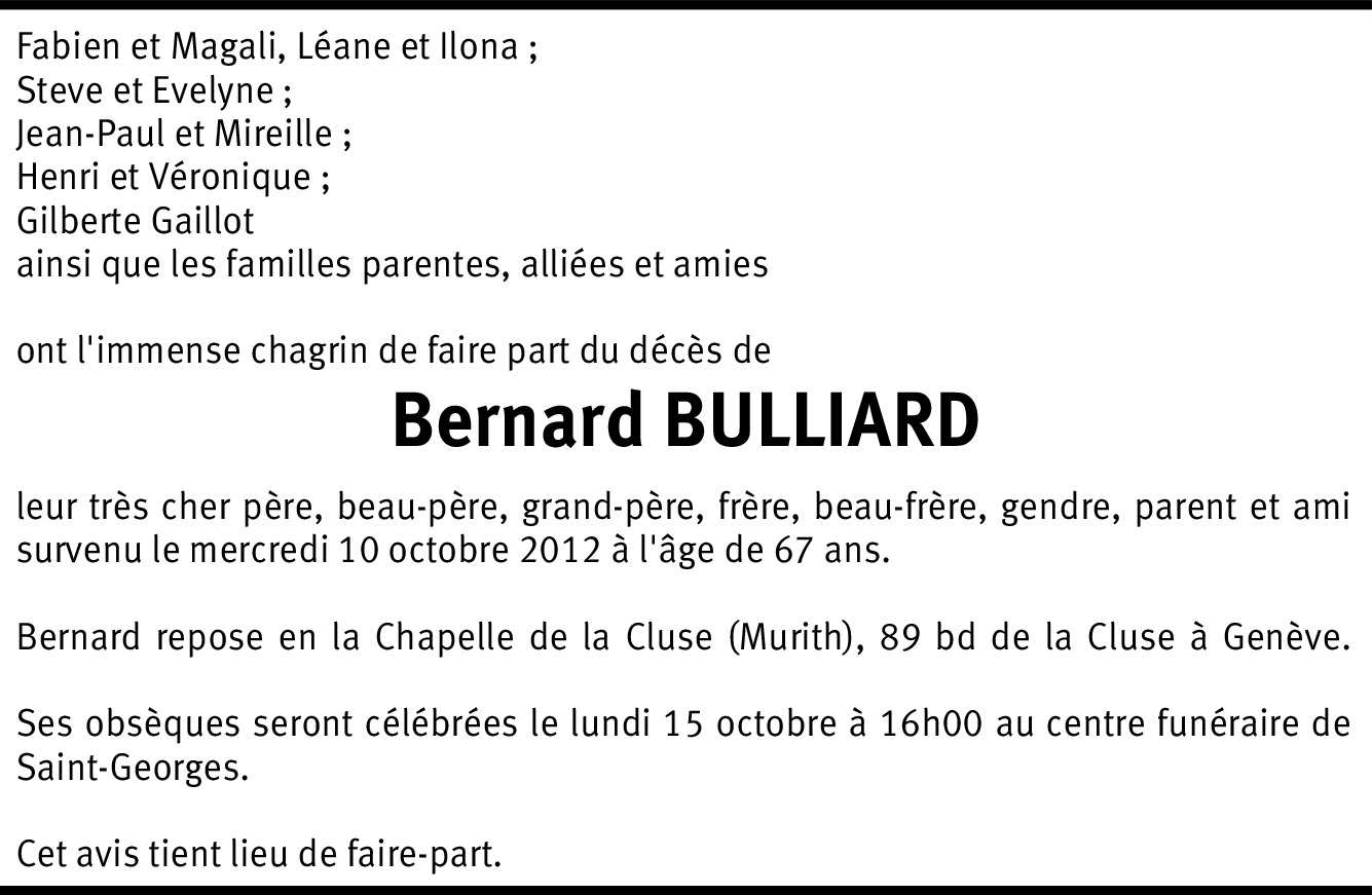 Je vous envoie mes sincères condoléances. Josette Sandoz.