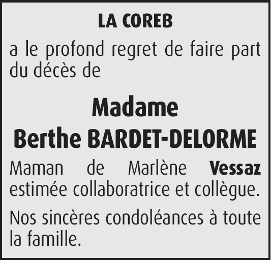 Nous avons été très touchés par la disparition de ta maman. De tout coeur avec toi et ta famille, nous te présentons nos sincères condoléances.