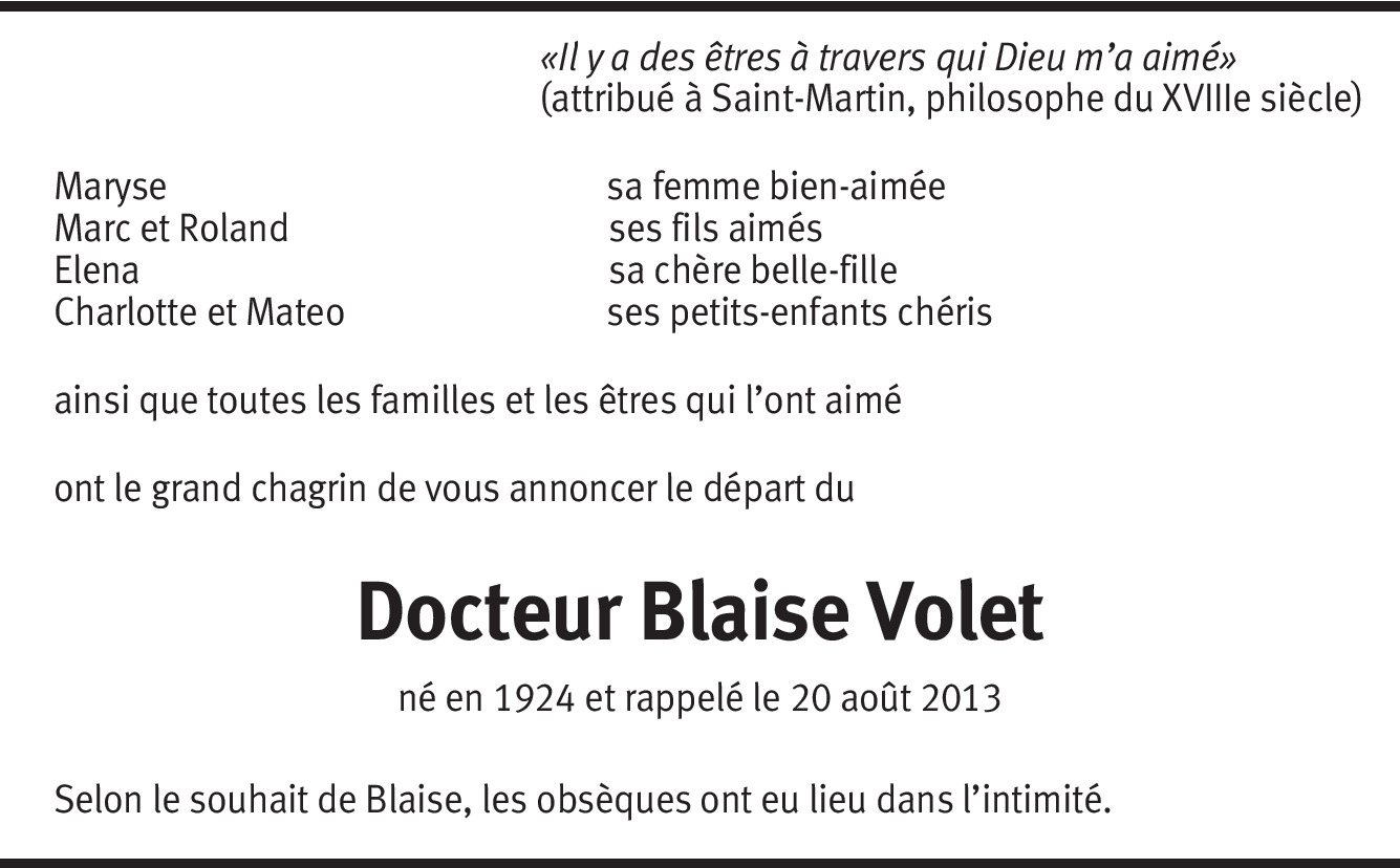 Je garderai du Dr Volet le souvenir d'un homme à l'écoute, d'une simplicité et le don de vous mettre à l'aise et n'oublierai jamais que c'est grâce à lui que j'ai ma fille.