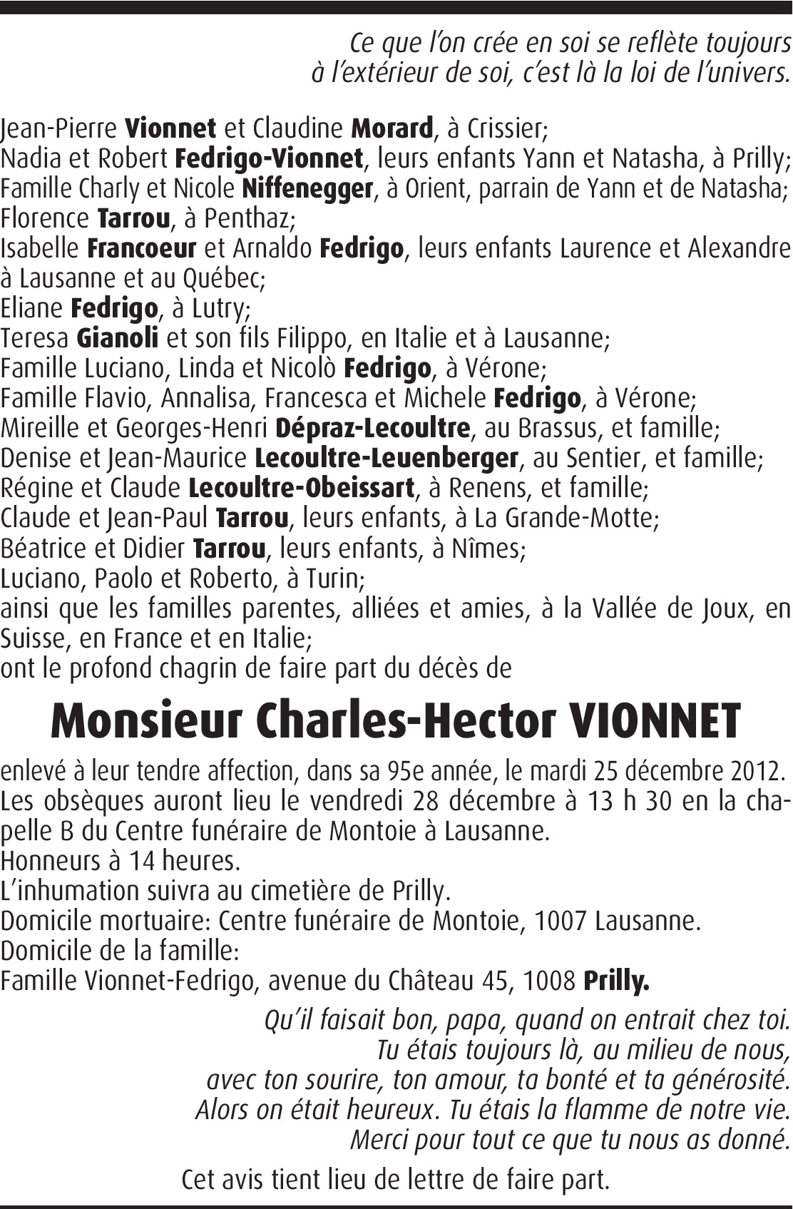 Dernière condoléances