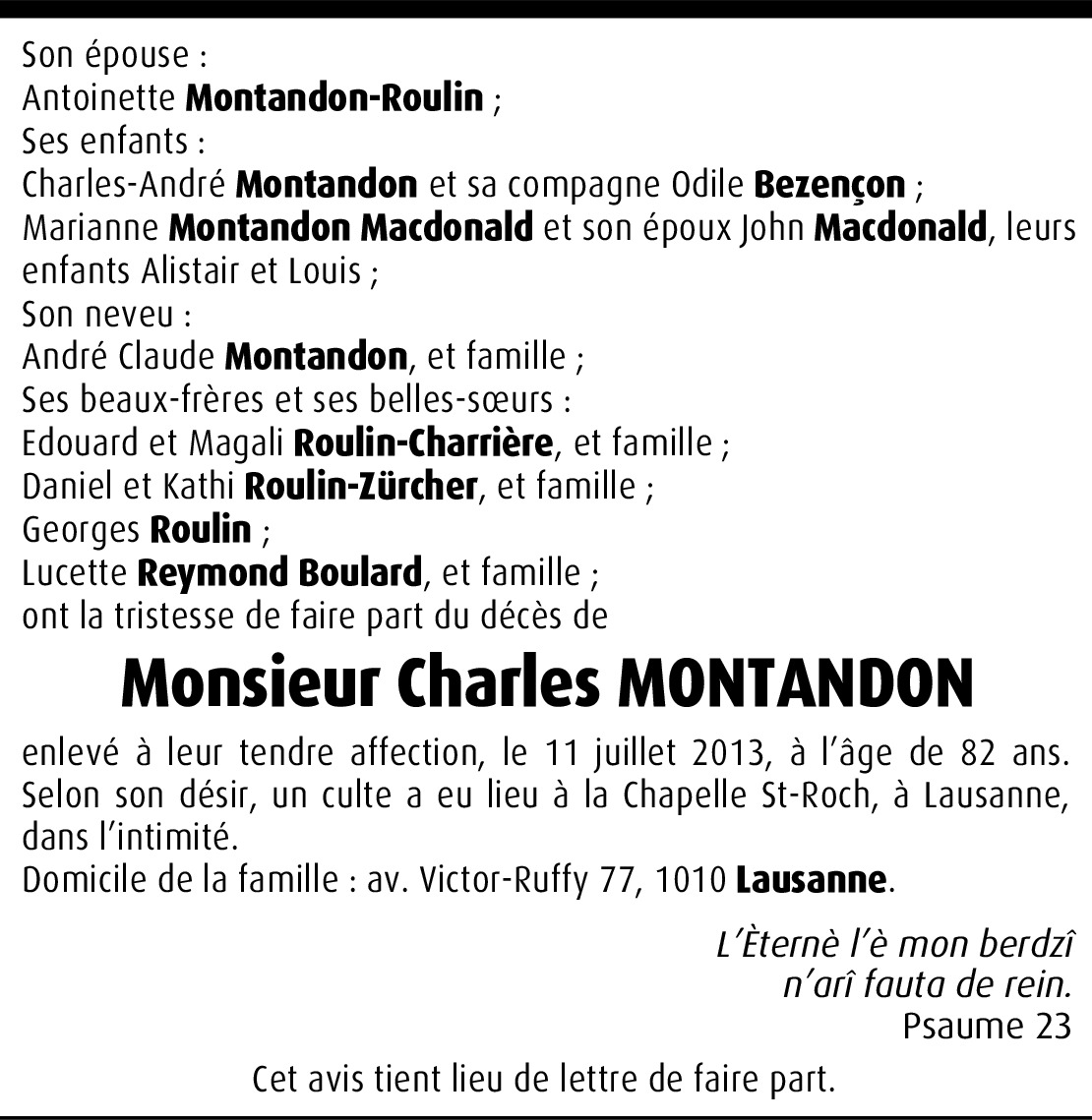 Dernière condoléances
