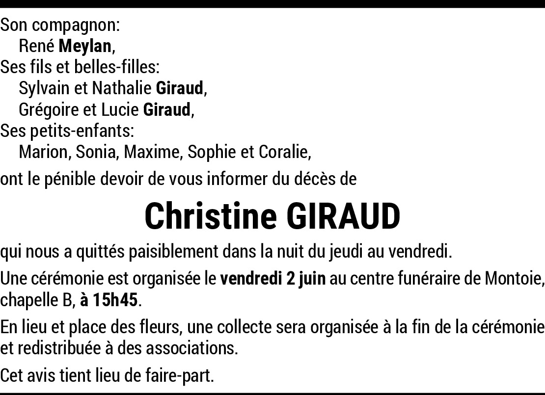 30.05.2023 Signaler Chère famille, c'est avec tristesse que j'ai appris la nouvelle. En pensées avec vous en ces moments pénibles et sincères condoléances. De la part de Chappuis