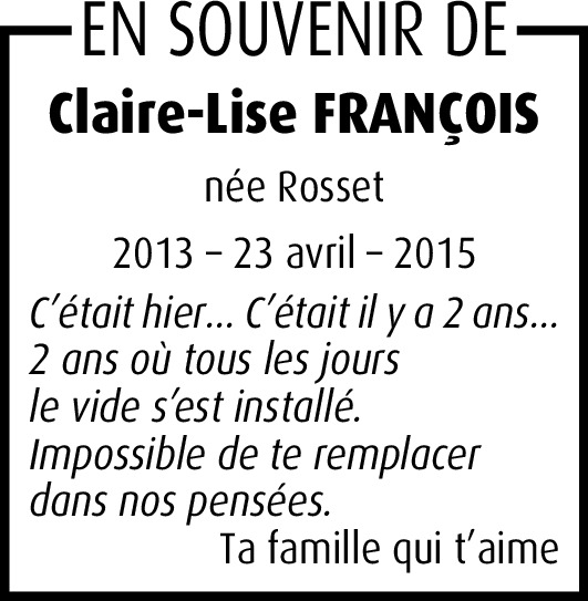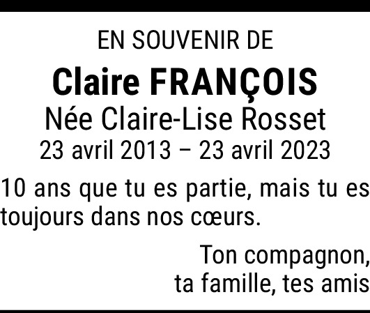 Pensées 10.02.2026 Signaler Bientôt 13 ans que tu nous as quitté. 13 ans que tu nous manque. Prends soin de nous de là haut! Ton petit fils qui t'aime. Vincent. De la part de Piccard