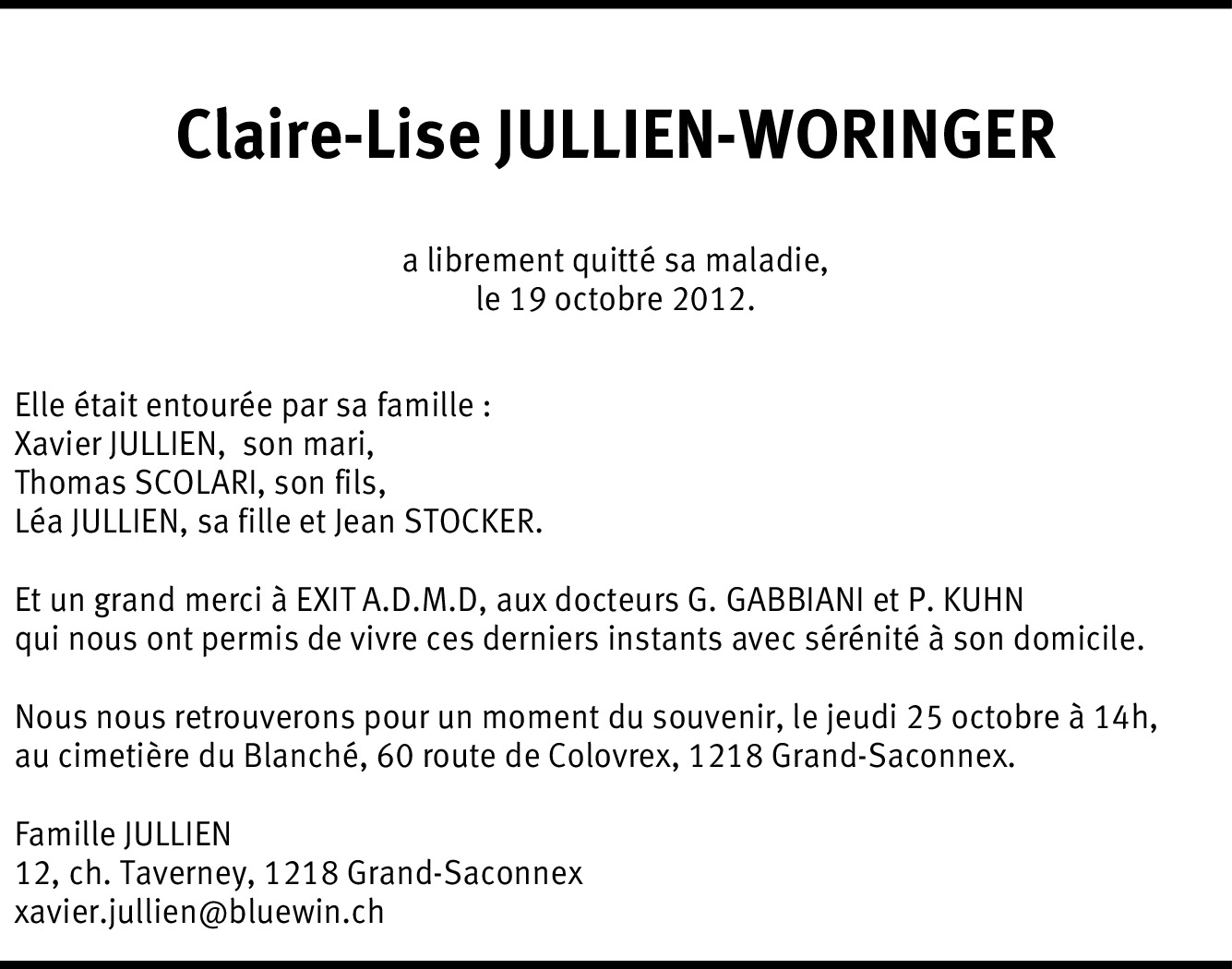 J'ai connue, beaucoup appreciée et perdue de vue, CLAIRE LISE WORINGER, nous avions 18 ans en 1962, en Italie, à "l'universita per stranieri" de PERUGIA.