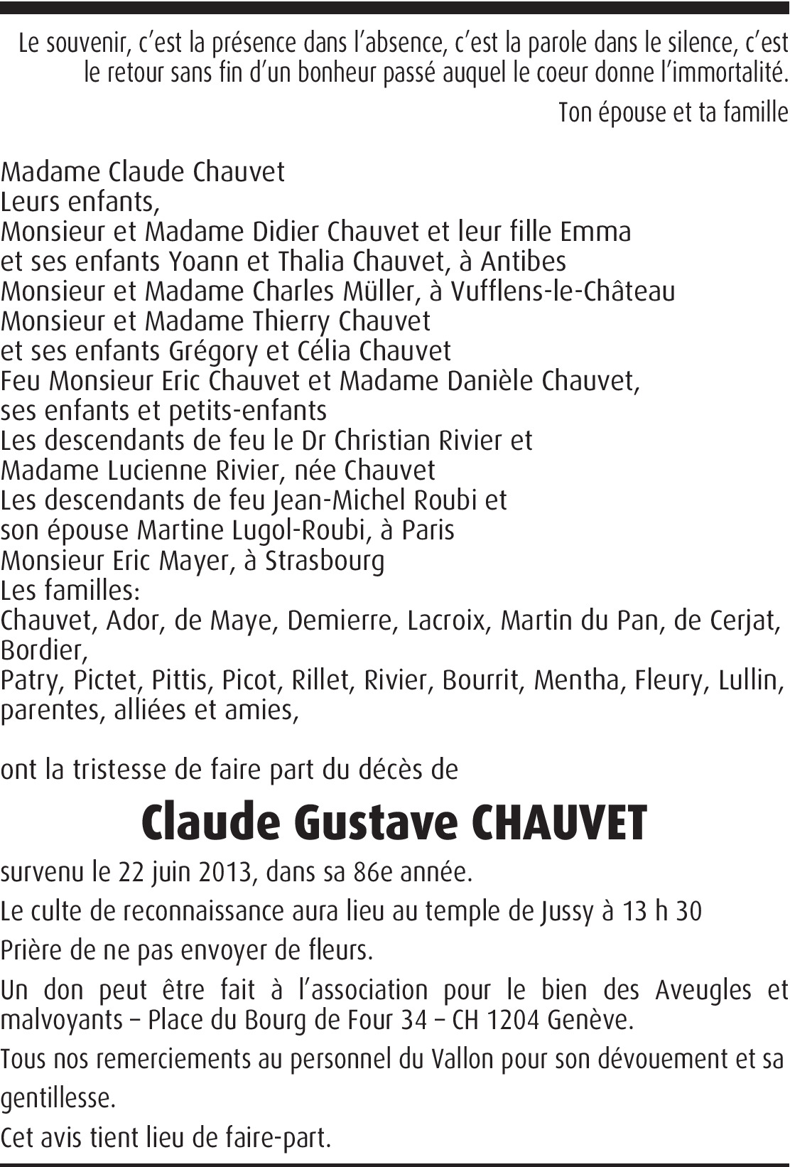 Vous souhaitez rester informé des nouveaux avis et condoléances pour ce défunt ?