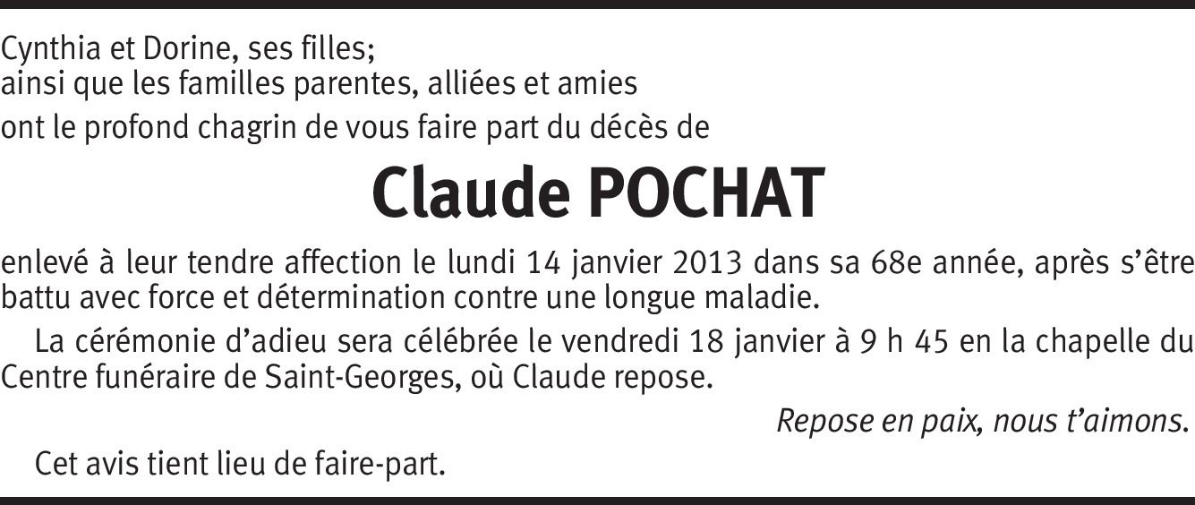 Je sais que tu n'aurais pas aimé qu'on fasse des têtes ... d'enterrement. Alors je te cite Jules Renard : "C'est si ennuyeux, le deuil ! A chaque instant il faut se rappeler qu'on est triste". Toute mon amitié et celle de tes copains du quartier -- Jean-Luc