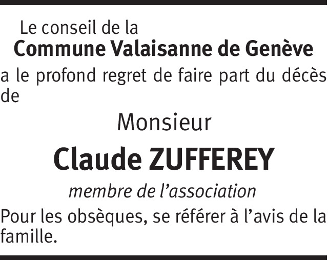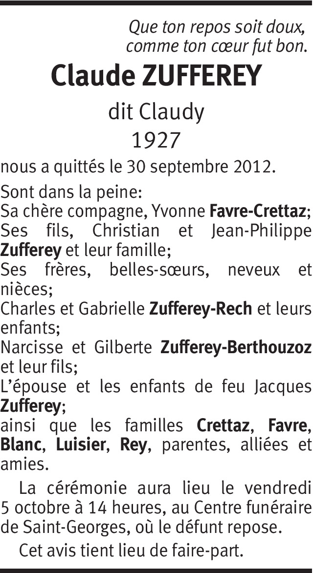 Adieu mon cher Claude, nos souvenirs communs continueront longtemps à chanter dans ma tête. Bonne route. EB, Pdt d'honneur de la Comona Valéjana dé Zénéva.