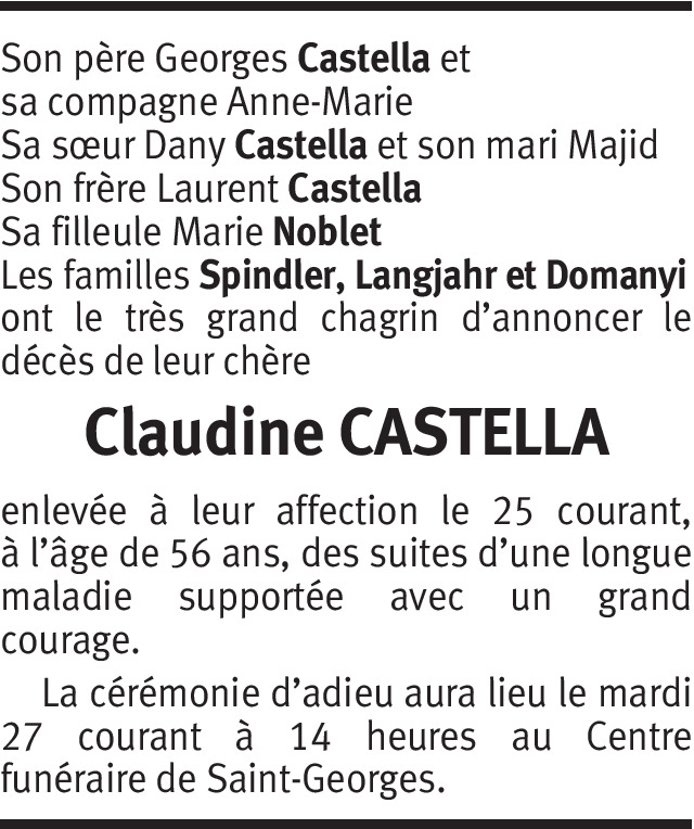 Il y a plus de 4 ans Signaler Très touchée par le décès de Claudine, je tiens à exprimer mes sincères condoléances à Georges ,Dany et Laurent Gladys a connu Claudine toute petite. Je suis la nièce de Gilbert et Huguette av Guiseppe Motta De la part de Gladys Berberat