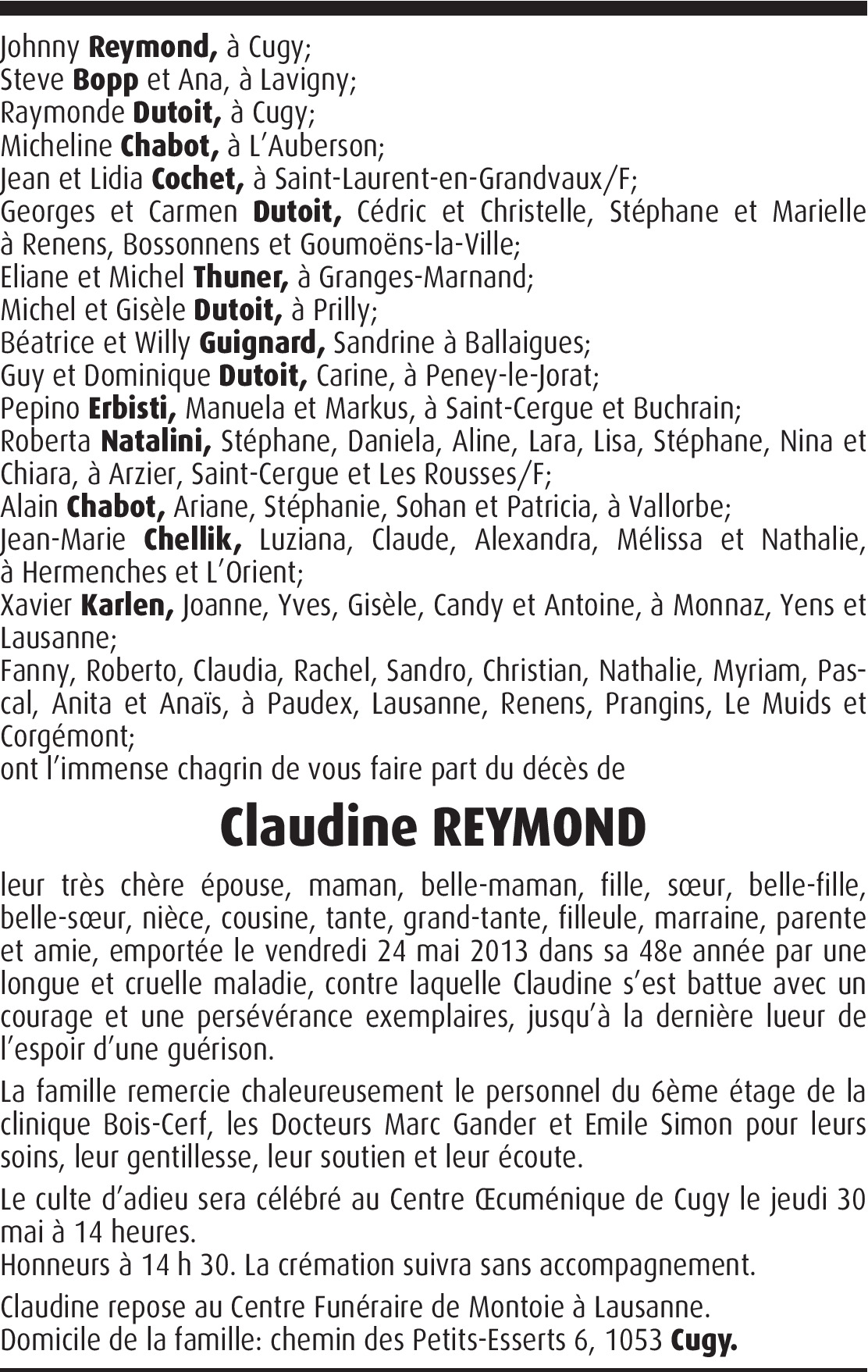 Un être cher vient de s'en aller. Comment exprimer par de simples mots la grande émotion et l'infinie tristesse qu'au fond de notre coeur nous ressentons. Nous vous présentons nos condoléances les plus sincères.