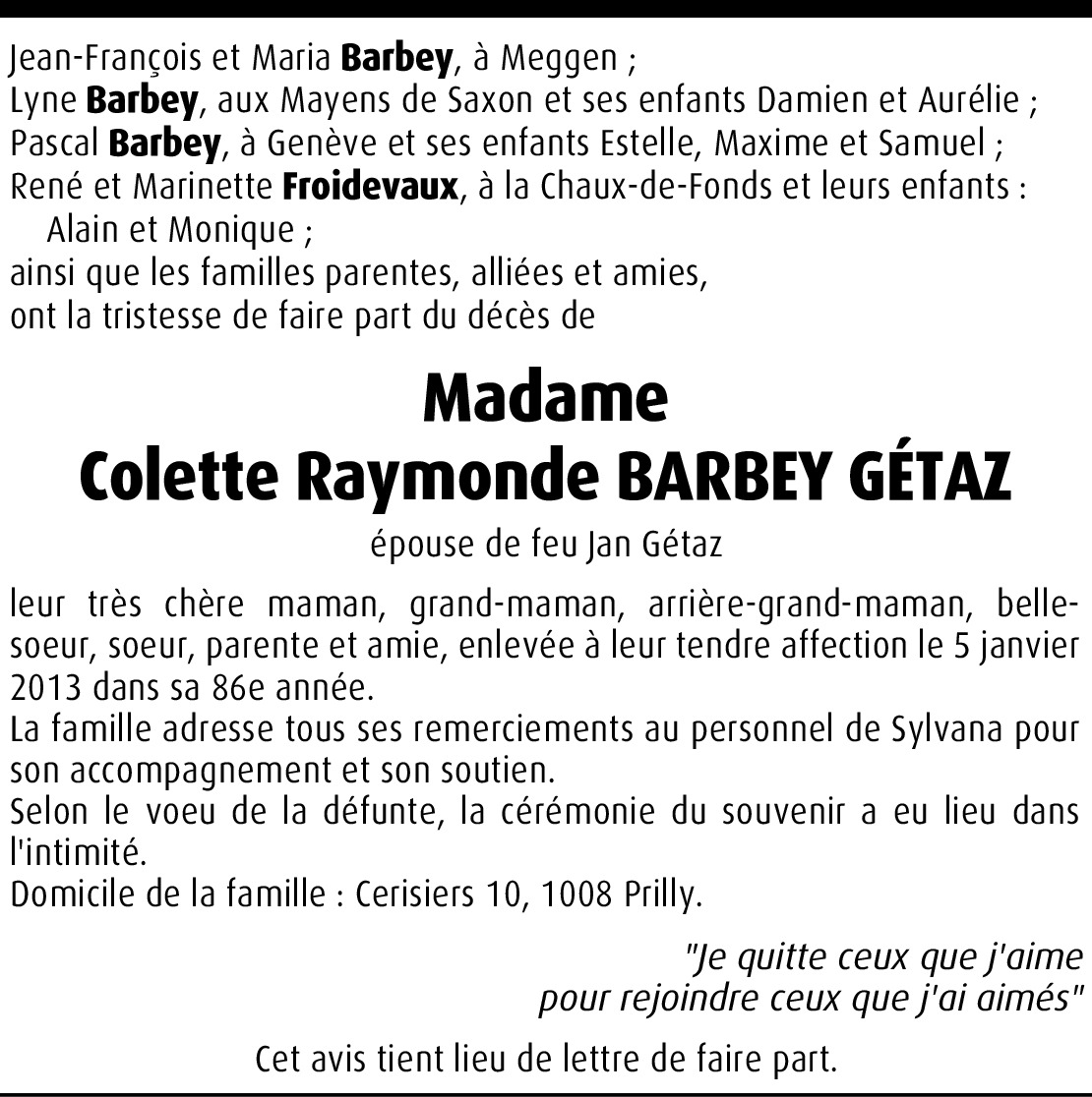 Colette Raymonde Barbey Gétaz