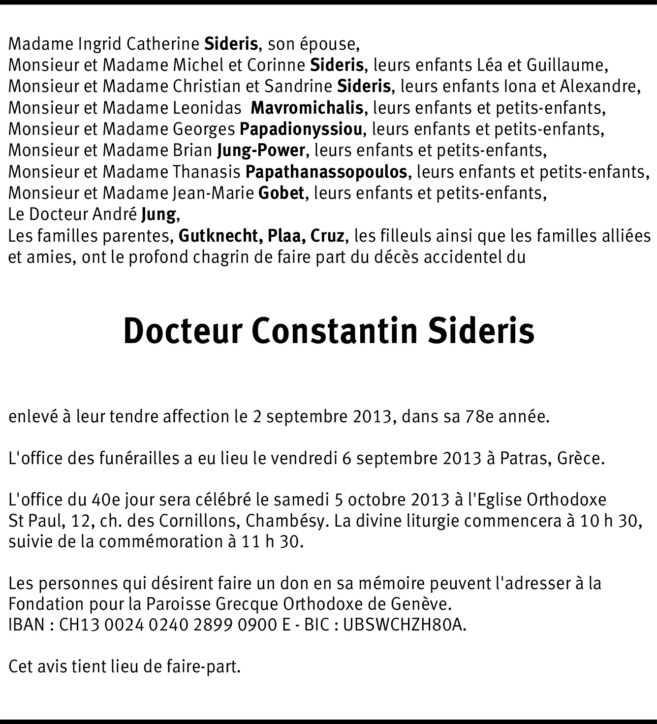 Je suis particulièrement attristé par la disparition de Constantin Sidéris .