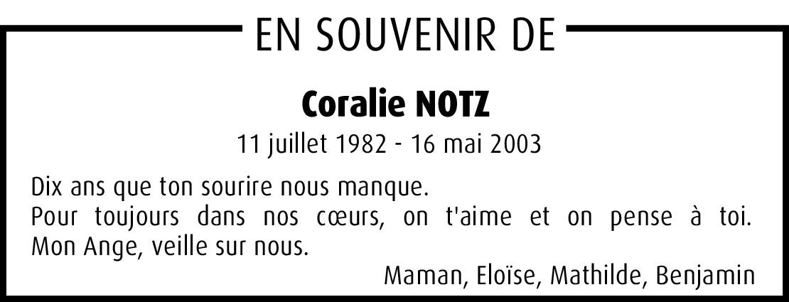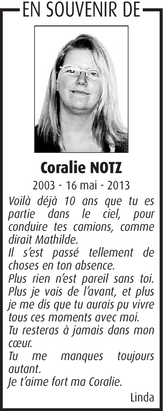 Il y a plus de 4 ans Signaler Toutes mes condoléances ! Je me présente, je m'appelle Yves j'étais un très bon ami de Coralie, je l'ai connue au cours professionnel à l'EPSIC, nous étions dans la même classe de 1999 à 2002. De la part de Yves Coderey