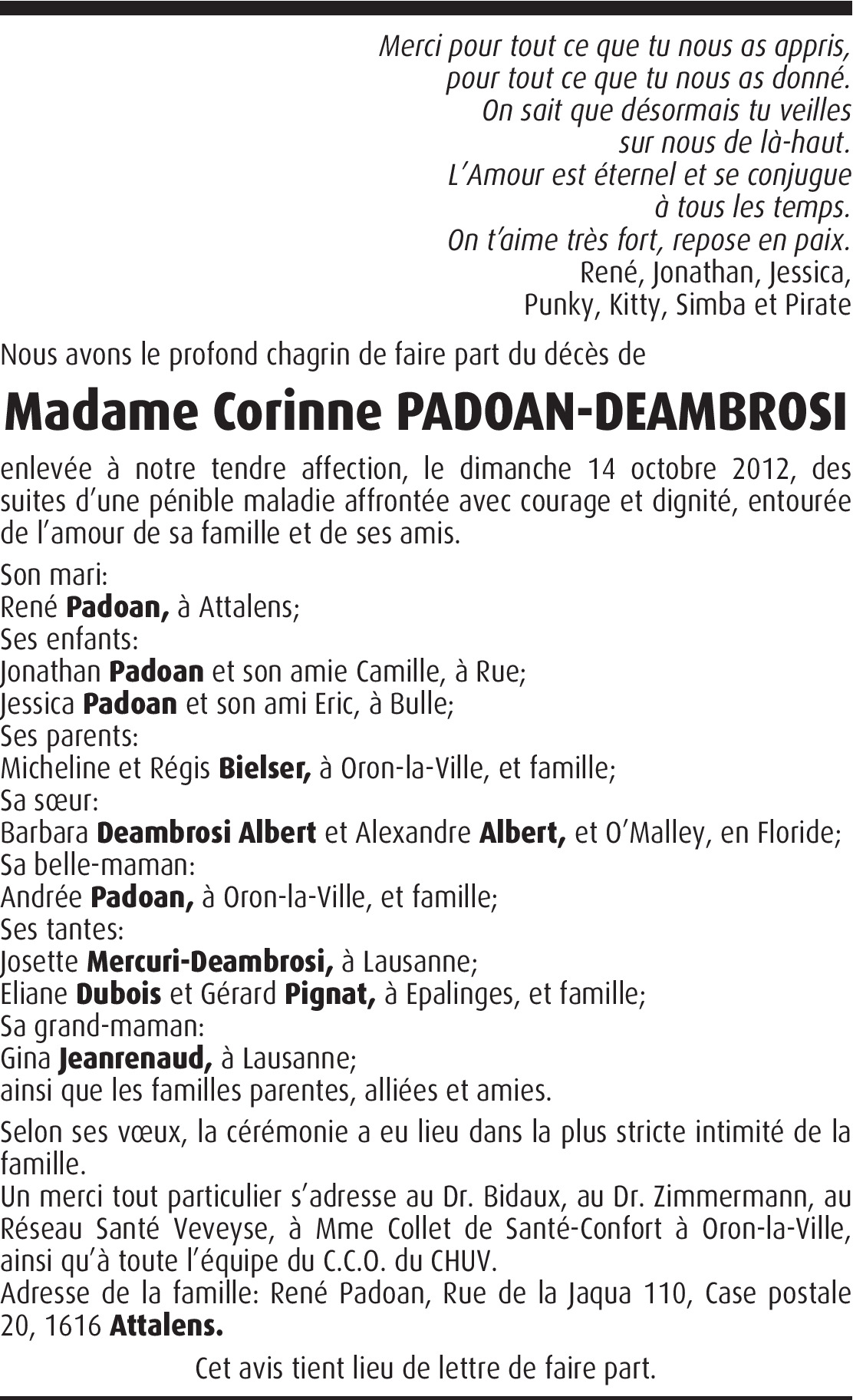 En vacances lors du décès de ta femme. Reçois nos sincères condoléances.