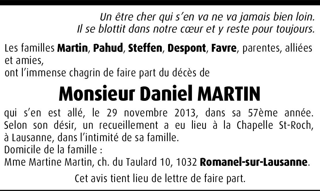 Il y a plus de 4 ans Signaler Repose en paix tonton! Cet adieu à été très pénible pour tout le monde. On a tous été courageux et braves! Que de beaux souvenirs reste à jamais gravé en moi! Je ne t'oublierai jamais. De la part de Fanny Steffen