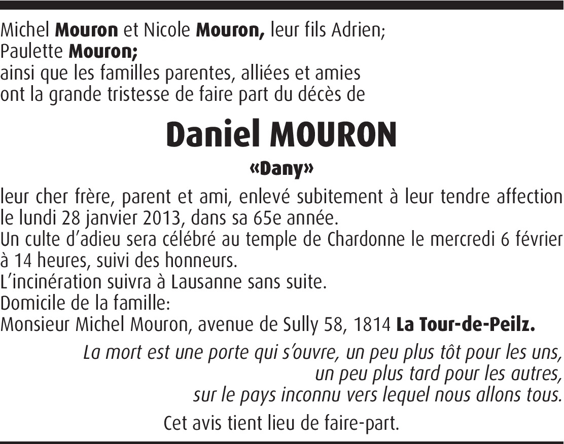 Vous souhaitez rester informé des nouveaux avis et condoléances pour ce défunt ?