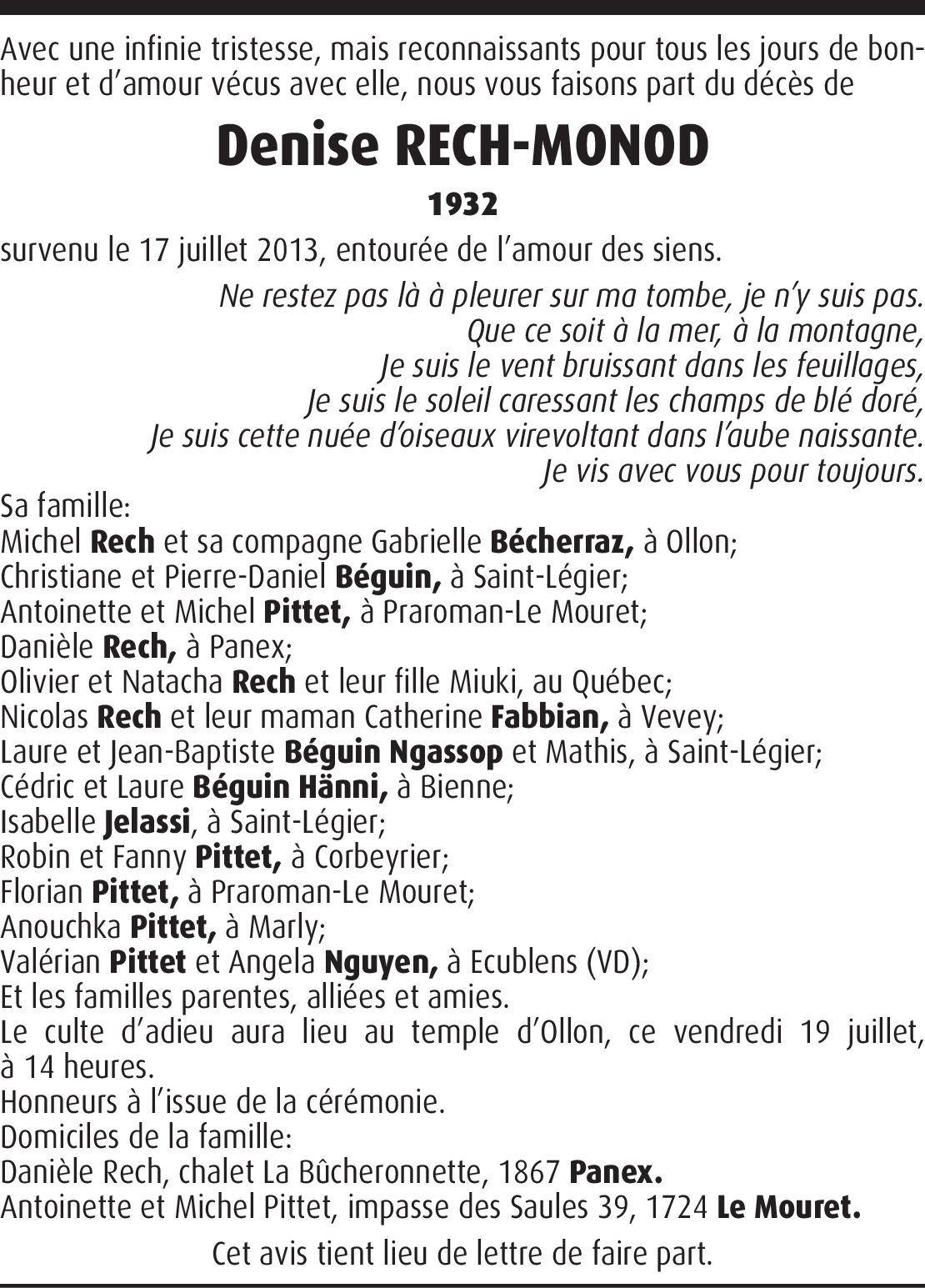Vous souhaitez rester informé des nouveaux avis et condoléances pour ce défunt ?