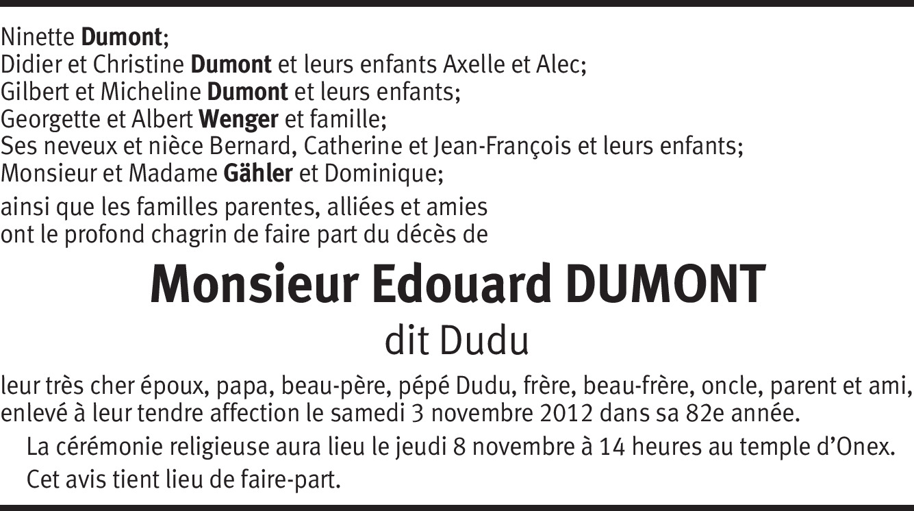 Nous venons d'apprendre le décès de notre cher ami Dudu et sommes consternés par cette douloureuse nouvelle. De tout coeur, nous sommes avec Ninette et ses enfants et nous leur exprimons nos très sincères condoléances et notre soutien.