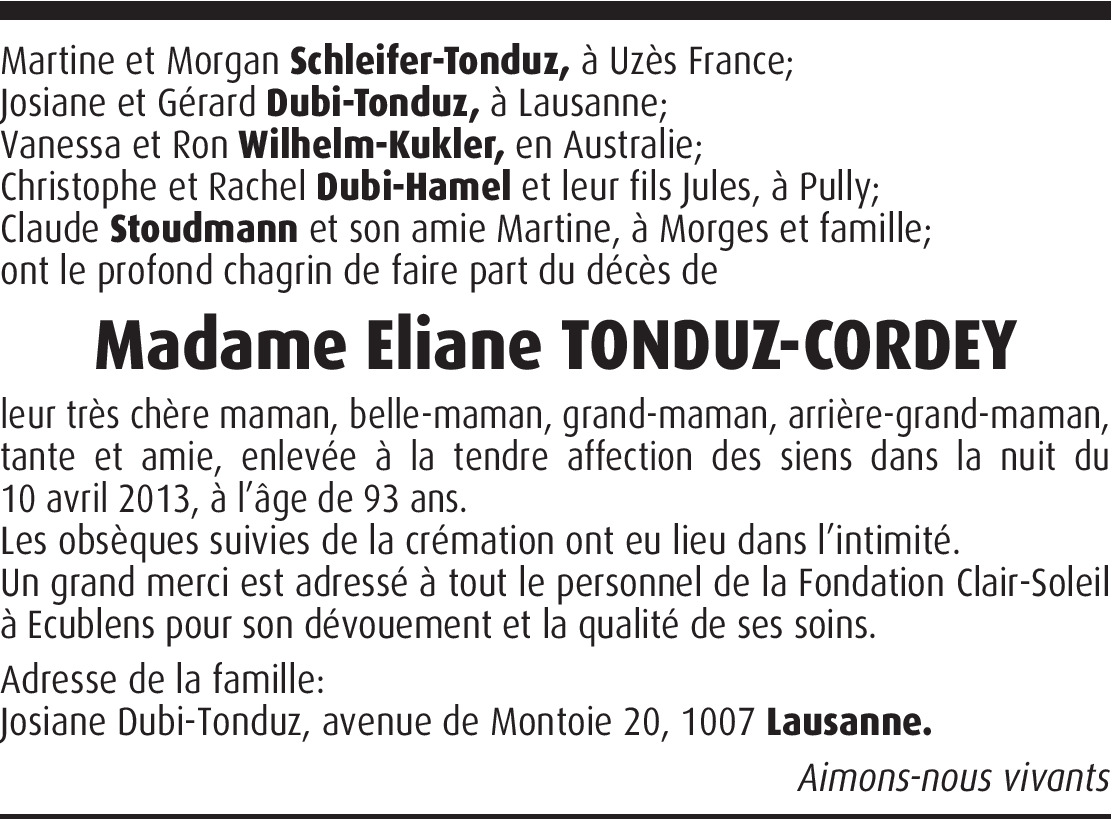 Il y a plus de 4 ans Signaler Ma chère Josiane, en ces jours douloureux je t'adresse toutes mes condoléances et mes meilleurs messages. Nous habitions le même quartier, je me souviens très bien de ta maman. Tous mes messages à toute ta famille. Bisous. Mireille De la part de Mireille Dumusc