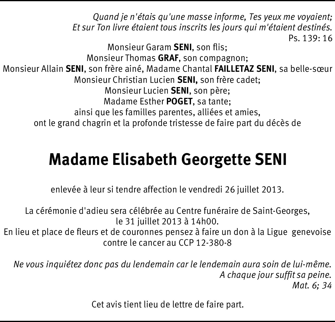 Je salue ici le courage d'Elisabeh, sa persévérance a trouvé la beauté de ce monde dans tout ce qu'elle rencontrait. Nous avons eu le privilège de mieux la connaitre lorsqu'elle passa chez nous en Virginie avec Tommy, d'entendre parler de sa proche famille, et de partager avec elle le talent de Garam dont elle était si fière. Je vous adresse à tous ma profonde sympathie... Elle sera toujours pressente dans notre mémoire. Janine et famille.