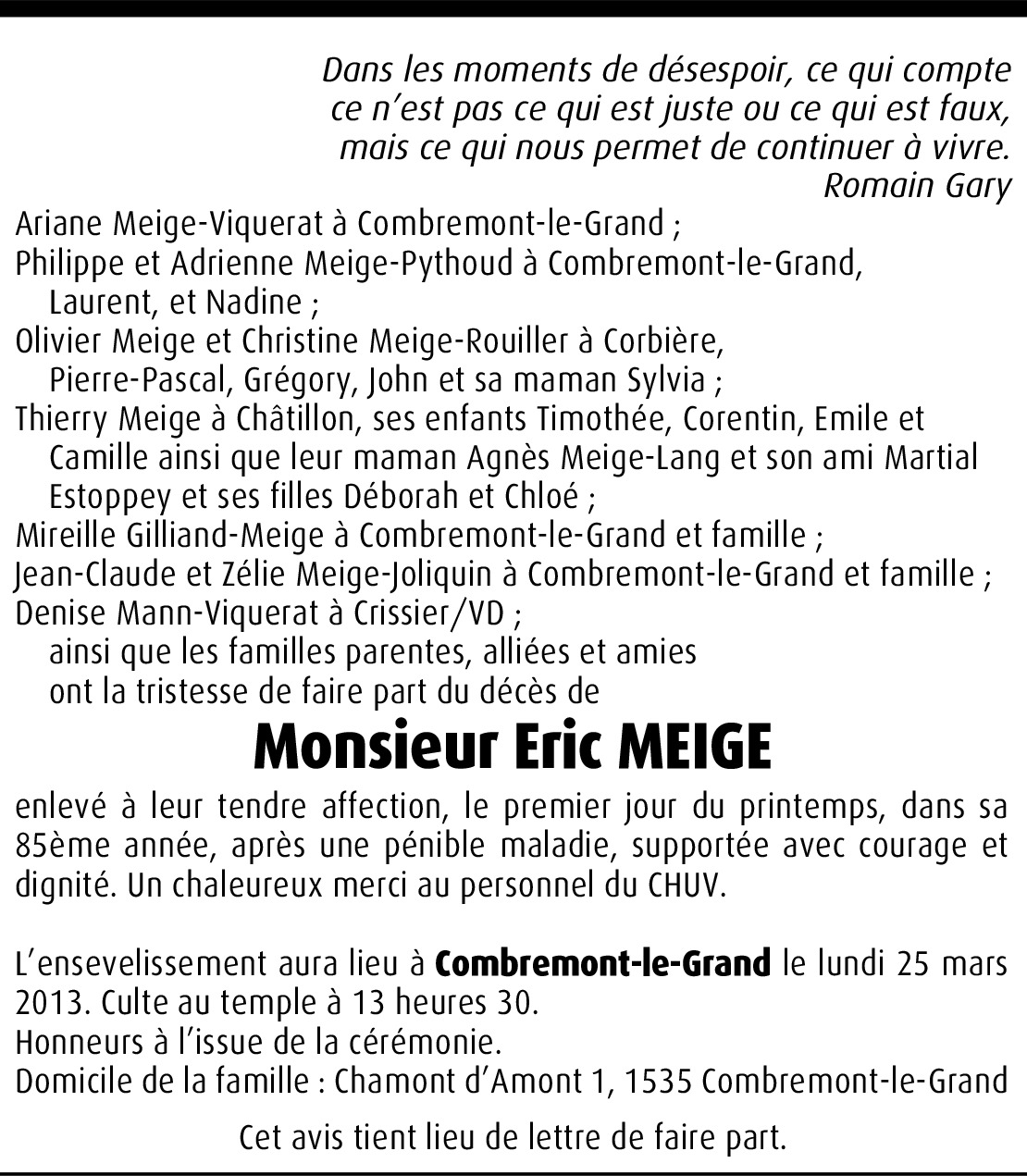Vous souhaitez rester informé des nouveaux avis et condoléances pour ce défunt ?
