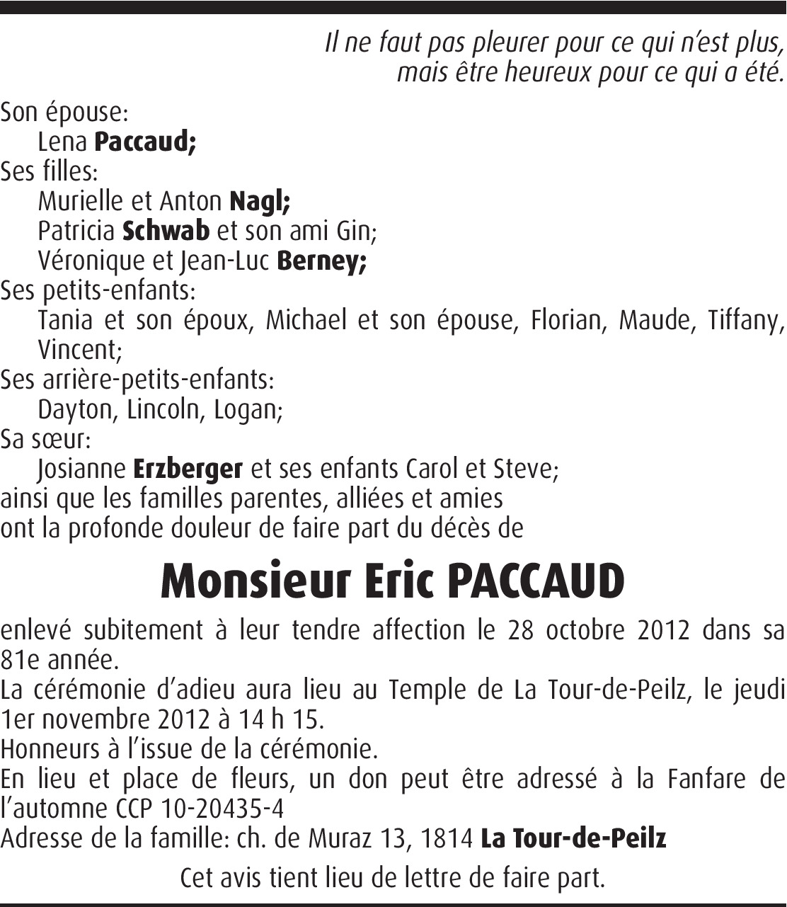 Vous souhaitez rester informé des nouveaux avis et condoléances pour ce défunt ?