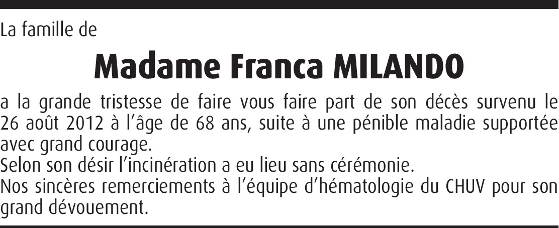 Il y a plus de 4 ans Signaler Chère famille, c'est tardivement que j'ai appris la nouvelle. Je suis en pensée avec vous et vous présente mes sincères condoléances. De la part de Jean-François Chappuis