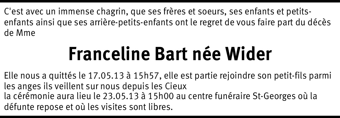 Il y a plus de 4 ans Signaler Merci Franceline de ton dévouement pour notre Fifi. Repose en paix. Condoléances à la famille. Ilia, Fifi, Daniel. De la part de Daniel Arnaudo