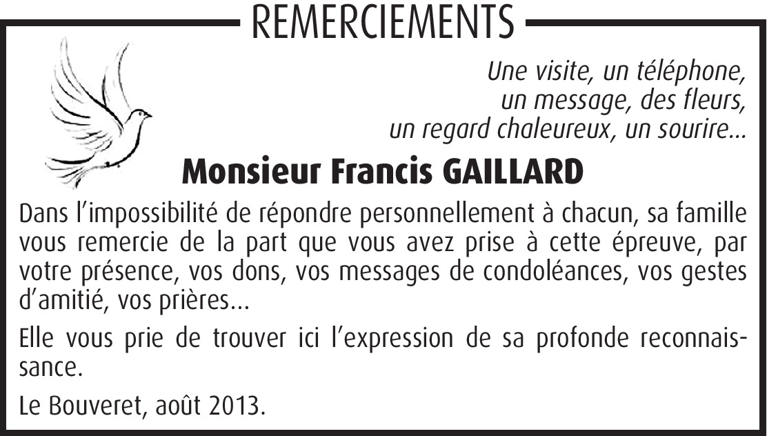 Vous souhaitez rester informé des nouveaux avis et condoléances pour ce défunt ?