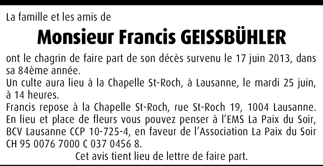 Vous souhaitez rester informé des nouveaux avis et condoléances pour ce défunt ?