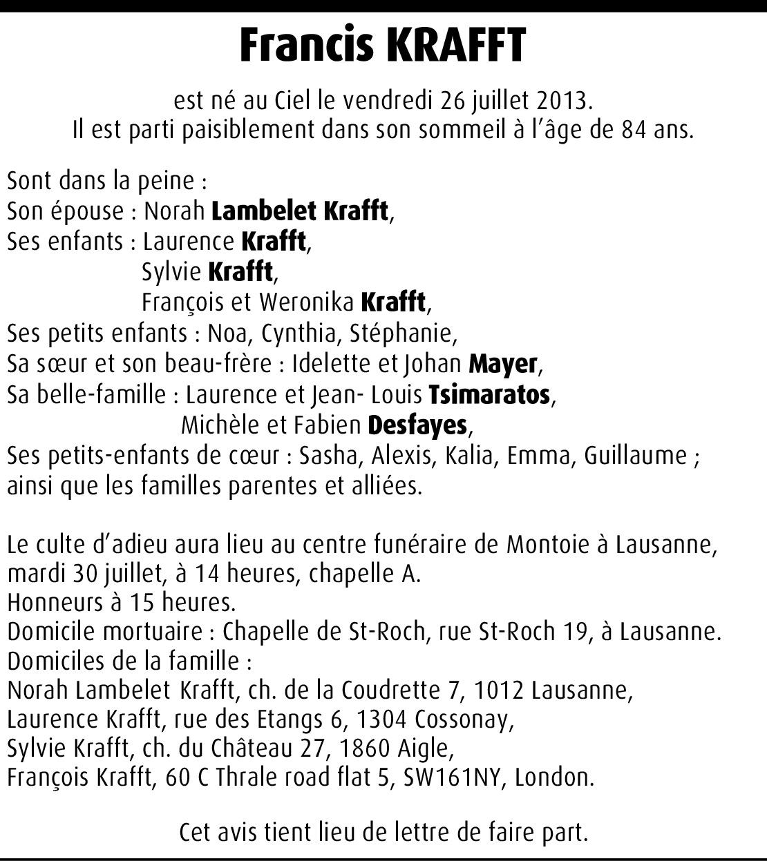 Vous souhaitez rester informé des nouveaux avis et condoléances pour ce défunt ?