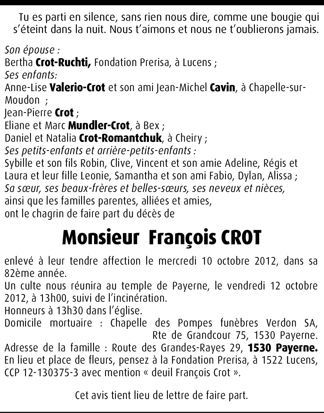 Vous souhaitez rester informé des nouveaux avis et condoléances pour ce défunt ?