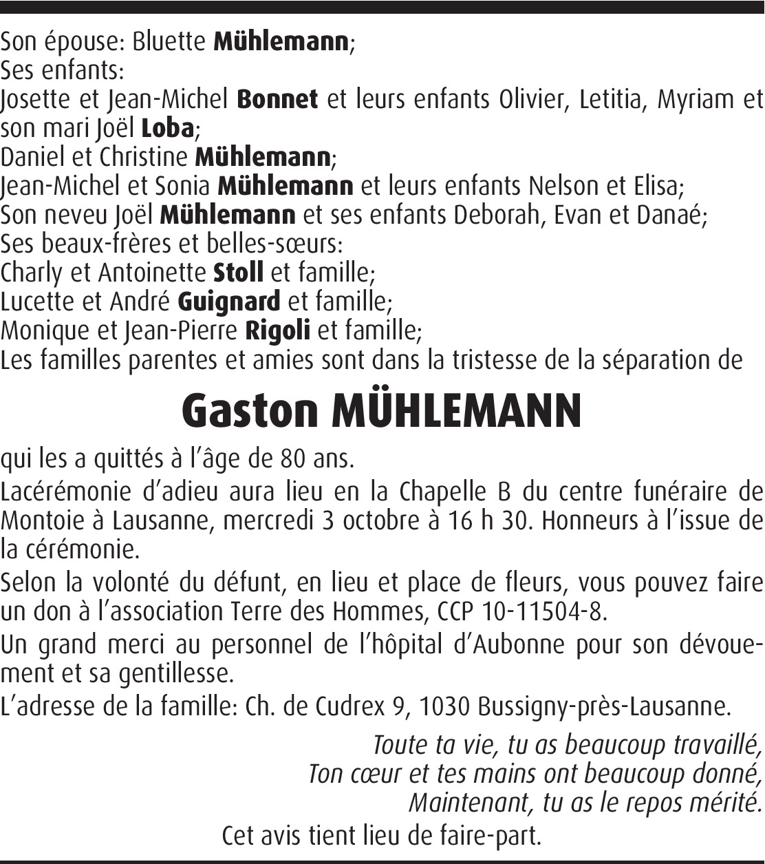 Vous souhaitez rester informé des nouveaux avis et condoléances pour ce défunt ?