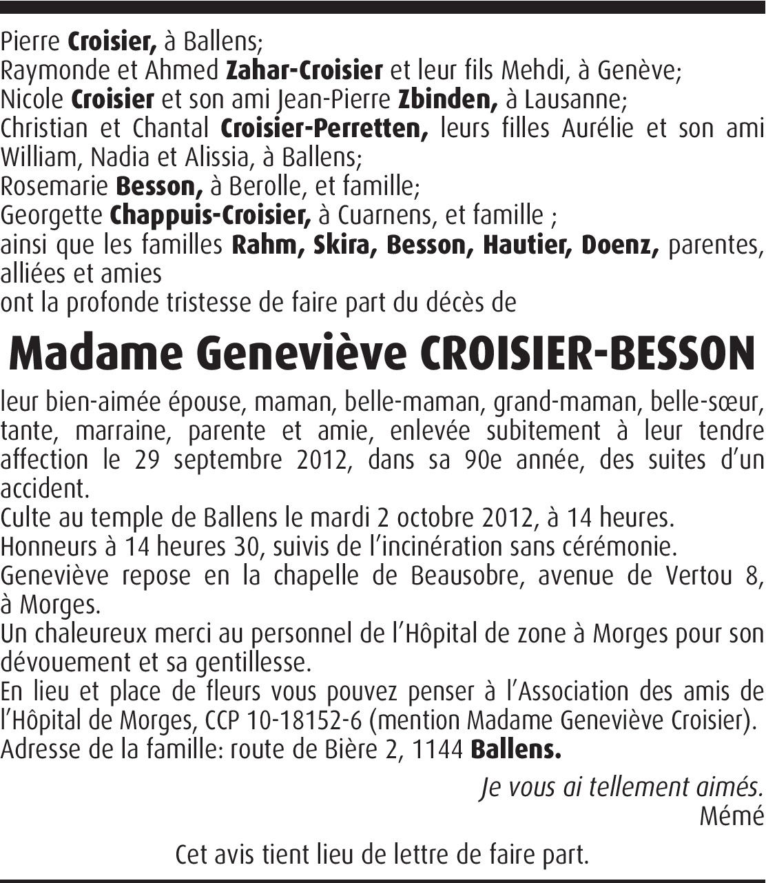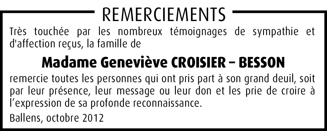 Il y a plus de 4 ans Signaler En pensées et en prières avec vous tous en ce temps difficile de séparation. Avec mon bon souvenir. Amicales salutations. De la part de Vreni Haldi-Lüthi
