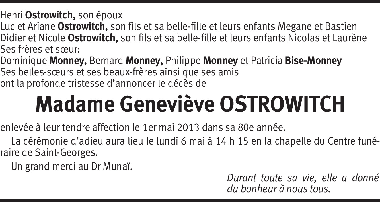 Nous tenons à te dire adieu, Geneviève. Tu nous as quittés si