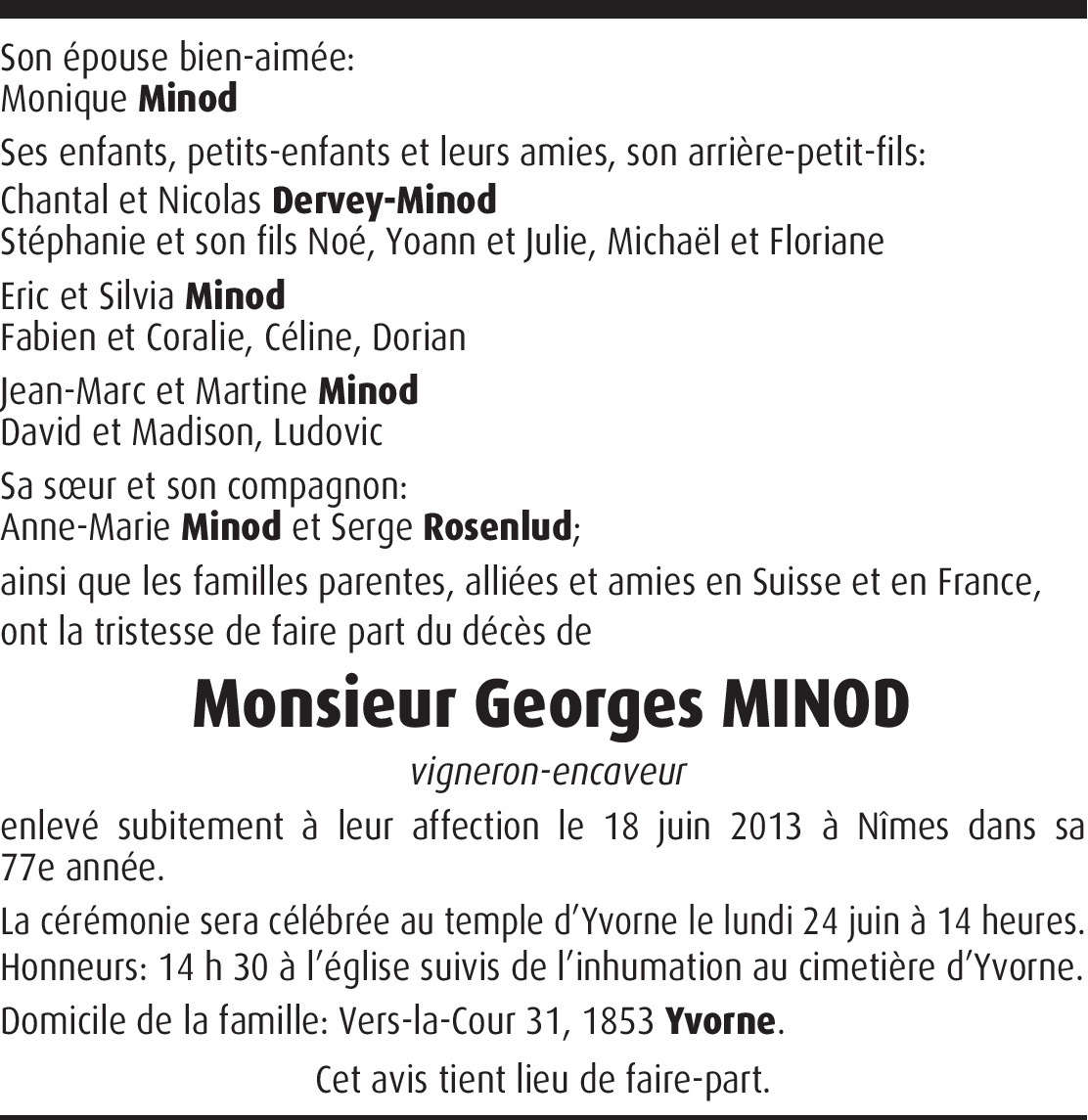 Vous souhaitez rester informé des nouveaux avis et condoléances pour ce défunt ?