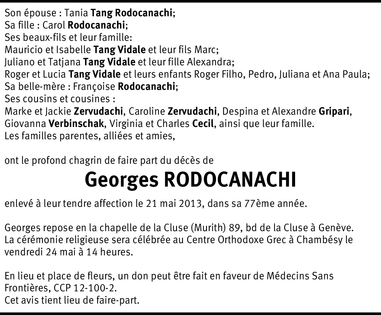 Dernière condoléances