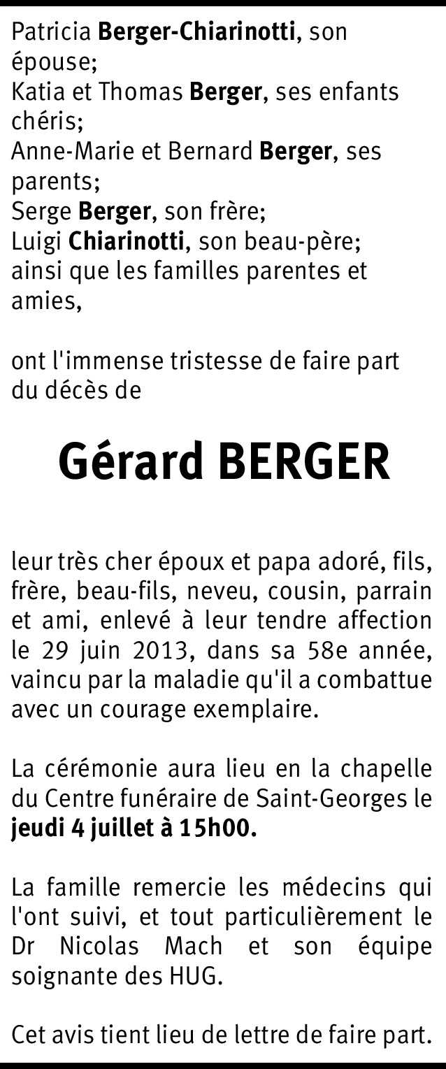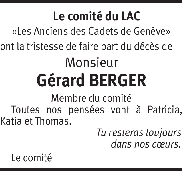 Chers Amis, chère Famille, Floriane, Sandrine, Evelyne, Céline et Christian sont envahis par une profonde tristesse suite à la disparition de Gérard. De nos nombreux souvenirs de vacances en familles, de moments ensemble, de vol sur les Alpes, de vols virtuels ou encore de discussions ô combien intéressantes à souhait, nous resteront. Trop tôt rappelé par l’Eternel, Gérard veillera sur vous chère Famille et nous vous souhaitons de poursuivre votre vie dans le souvenir impérissable des joies qu’il vous laisse. C’est l’avantage de ce souvenir-ci que de pouvoir, infiniment, se retourner sur ce passé ; en savourer les moments les plus fous ou encore, en rire de nos maladresses ! Avec toute notre amitié, nous somme proches de vous en ce moment de souffrance. Floriane, Sandrine, Evelyne, Céline et Christian