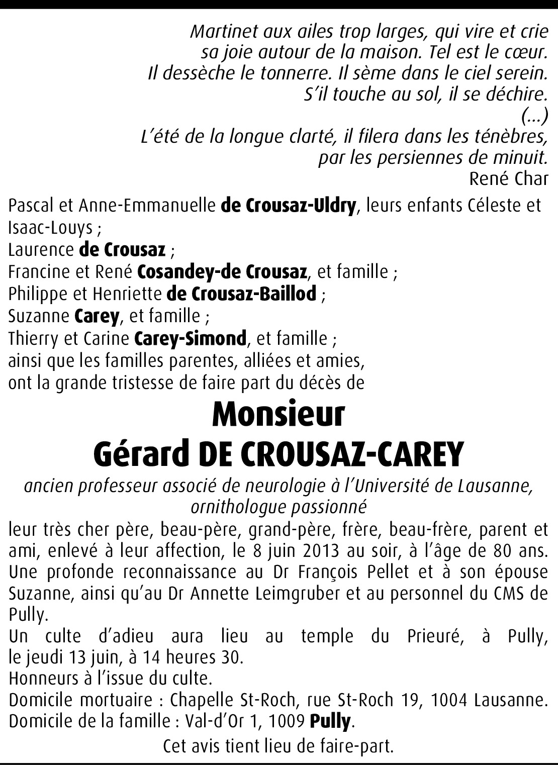 Gérard De Crousaz-Carey