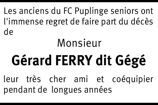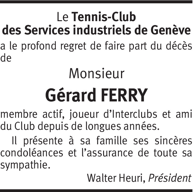 Nous avons partage tellement de souvenirs de notre vie privée et sportive depuis l'âge de 14 ans en sélection cadets puis plus tard avec nos amis vétérans de Puplinge nos sorties amicales avec toujours une profonde amitié que c'est avec une profonde émotion et un immense chagrin que j'ai appris cette triste nouvelle. A toute ta famille mes condoléances. Patrick Duval.
