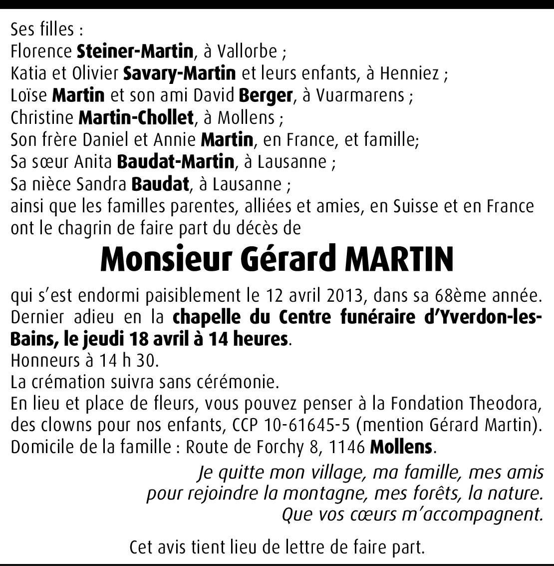 Vous souhaitez rester informé des nouveaux avis et condoléances pour ce défunt ?