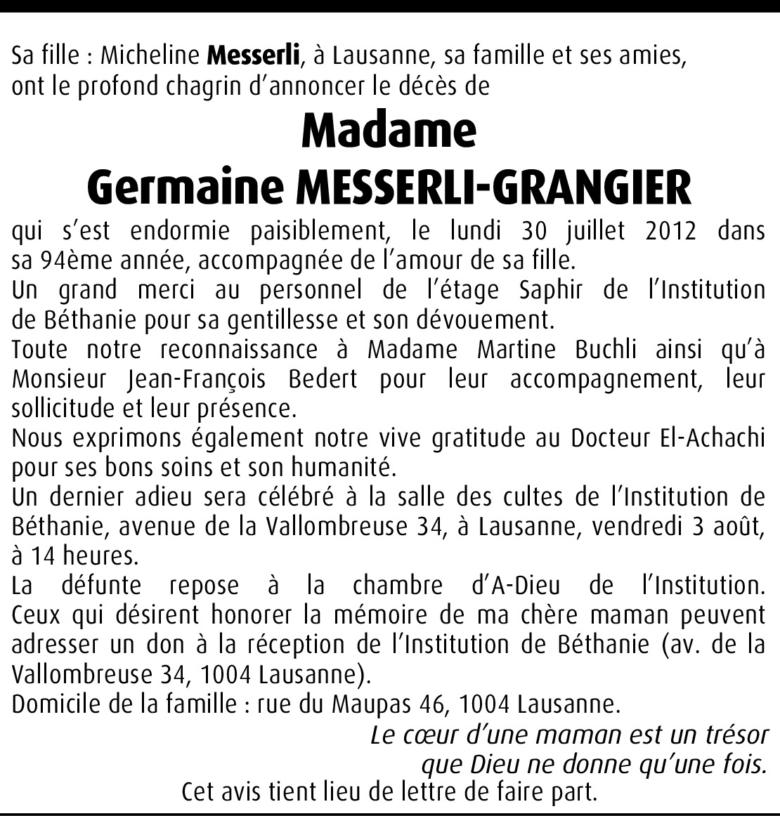 Il y a plus de 4 ans Signaler Chère Michelin et amie, nous sommes de tout coeur avec toi en ces moments et gardons de ta Mère les meilleurs souvenirs. Francis et Heidi. De la part de Francis Brot