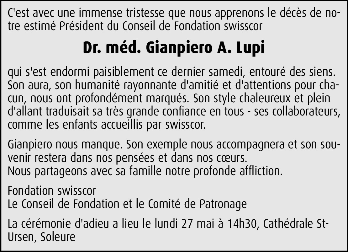 Il y a plus de 4 ans Signaler Ich kondoliere der Ganzen Famillie Lupi von Ganzem Herzen De la part de